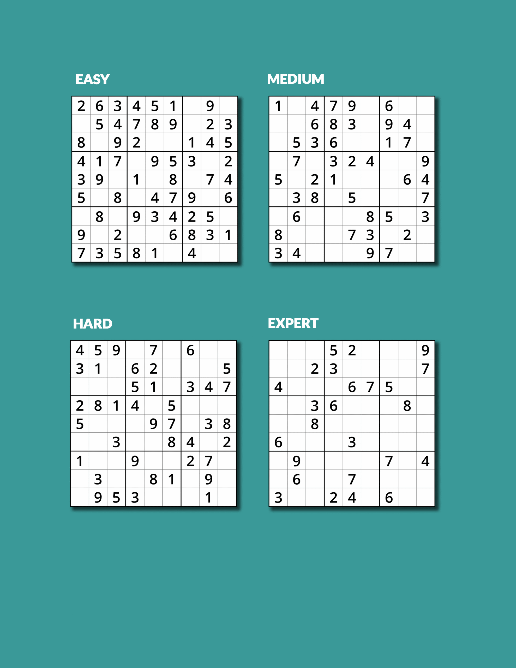 • Easy to Expert Puzzles